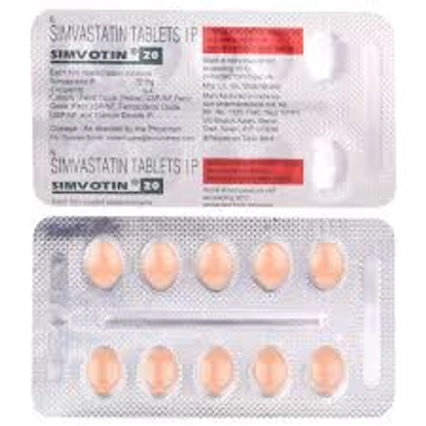 Simvotin 20 Tablet belongs to a group of medicines called statins. It is used to lower cholesterol and reduce the risk of heart disease. Cholesterol is a fatty substance that builds up in your blood vessels and causes narrowing, which may lead to a heart attack or stroke.