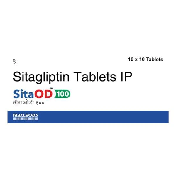 Sita OD 100 Tablet is used to reduce high blood sugar levels in patients who consistently follow a balanced diet and exercise. It works by increasing the amount of insulin in the body. It may cause side effects such as upper respiratory tract infections, headaches, and nasopharyngitis (inflammation of nasal passages). Take it as prescribed by your doctor.