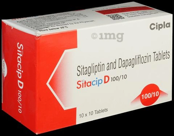 Sitacip D 10mg/100mg Tablet is a combination medicine that helps control blood sugar levels. This medicine is used together with diet and exercise to improve blood sugar control in adults with type 2 diabetes mellitus. It helps in proper utilization of insulin, thereby lowering the blood sugar level.