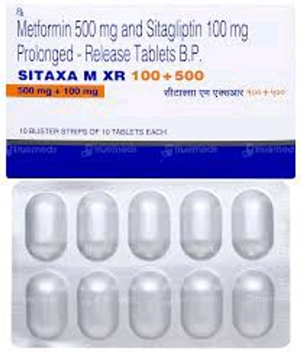 Sitaxa M XR 100+500 Tablet is a combination of two medicines that control high blood sugar levels in people with type 2 diabetes mellitus. This helps prevent serious complications of diabetes, such as kidney damage and blindness and may reduce your chances of having a heart attack or strok