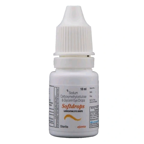 Softdrops Eye Drop is used to treat dry eye disease. It contains Carboxymethylcellulose and Glycerin, which works by increasing tear viscosity in the eye and lubricates the eye's mucous membrane surfaces. In this way, it provides temporary relief from burning and discomfort. It may cause temporary minor side effects such as burning/stinging/ irritation. Before using this medicine, you should tell your doctor if you are allergic to any of its components or if you are pregnant/breastfeeding, and about all the medications you are taking and pre-existing medical conditions. Do not touch the bottle's tip to avoid contamination; replace the cap tightly after each use.