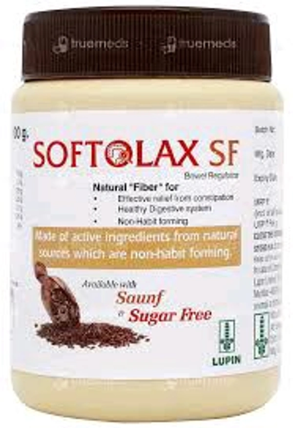 Softolax Powder Saunf Sugar Free is an amalgamation of ingredients that work together to help maintain a healthy digestive system, keep fungal, viral and bacterial infections at bay. It is useful in the treatment of ulcers in the stomach, irritable bowel syndrome and diarrhoea. Key Ingredients: Isabgol (psyllium husk)