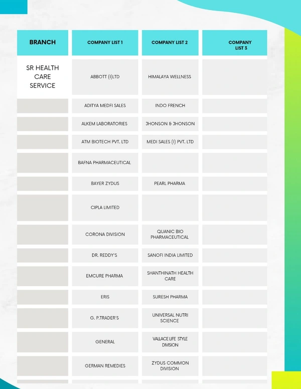 SR HEALTHCARE SERVICE - COMPANY SUPPLIERS LIST