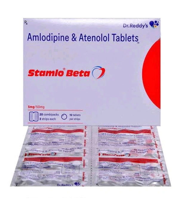 Stamlo Beta is a combination medication containing amlodipine and atenolol, primarily used to treat high blood pressure (hypertension) and prevent angina (chest pain). It works by relaxing blood vessels and slowing the heart rate, reducing the heart's workload. It is also used to lower risks of heart attacks and strokes