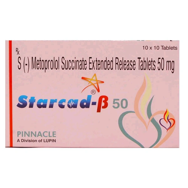Starcad-Beta 50 Tablet belongs to the class of antihypertensive medicines used in the treatment of high blood pressure, arrhythmia, and angina pectoris. This medicine also helps reduce the chances of heart problems such as heart attack and stroke. This medicine contains bisoprolol which alters the response to nerve impulses in the heart thereby making the heart pump blood easier. Common side effects include headache, fatigue, nausea, vomiting, stomach upset, diarrhoea or constipation, abdominal pain, numbness, and cold extremities