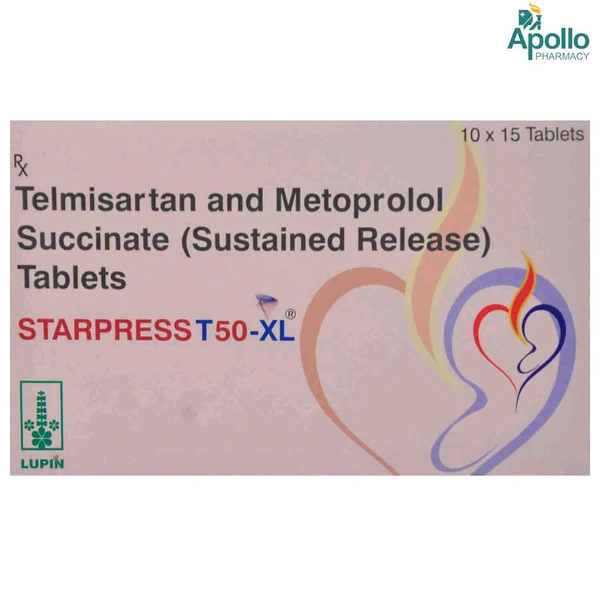 Starpress T 50-XL Tablet is a medicine used for treating high blood pressure. By lowering blood pressure, it helps in preventing future heart attacks and strokes. Early treatment with this medicine also improves the chances of survival in patients with heart attacks.