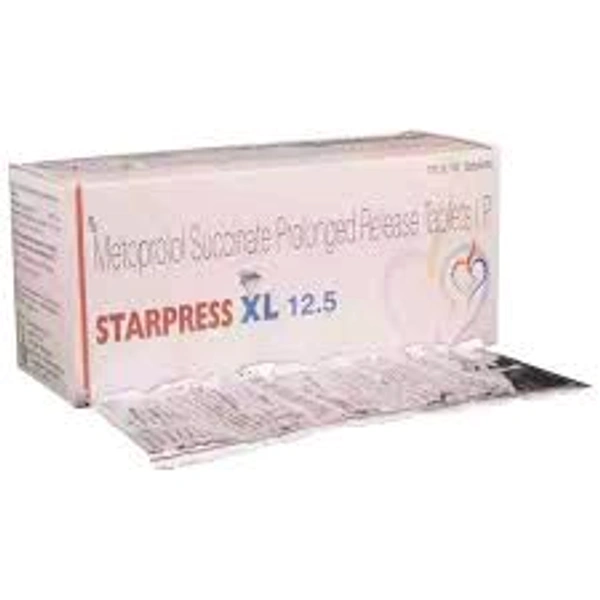 Starpress XL 12.5 Tablet belongs to a group of medicines called beta-blockers. It is used to treat high blood pressure (hypertension), angina (heart-related chest pain), and irregular heart rhythms (arrhythmia). It also helps to prevent migraines, future heart attacks, and stroke.28 Jan 2025