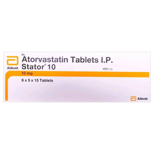 Stator 10 Tablet is used in the treatment of high cholesterol. It contains Atorvastatin, which works by slowing the production of cholesterol in the body to decrease the amount of cholesterol that may build up on the arteries walls and block blood flow to the heart, brain, and other parts of the body. Thereby, it helps prevent heart diseases such as heart attacks and strokes in the future. In some cases, you may experience allergic reactions, hyperglycaemia (excess of glucose in the bloodstream), headache, vision blurred, pain, constipation, nausea, diarrhoea, muscle spasms, joint swelling, and back pain. Before taking this medicine, you should tell your doctor if you are allergic to any of its components or if you are pregnant/breastfeeding, and about all the medications you are taking and pre-existing medical conditions.