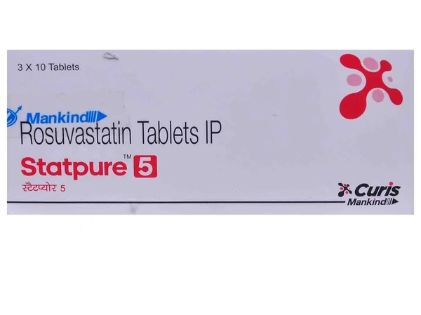 Statpure 5 Tablet is used in the treatment of high cholesterol and to reduce the risk of stroke and heart attack. It contains Rosuvastatin, which slows down cholesterol production in the body and decreases the amount of cholesterol that may build up on the arteries walls and block blood flow to brain, heart and other body parts. Thus, it lowers cholesterol and fats levels and helps to prevent stroke, heart disease and heart attack. It may cause side effects such as myalgia (muscle pain), asthenia (lack of energy), nausea, headache, abdominal pain, muscle pain, weakness, and daytime drowsiness. Before taking this medicine, you should tell your doctor if you are allergic to any of its components or if you are pregnant/breastfeeding, and about all the medications you are taking and pre-existing medical conditions.