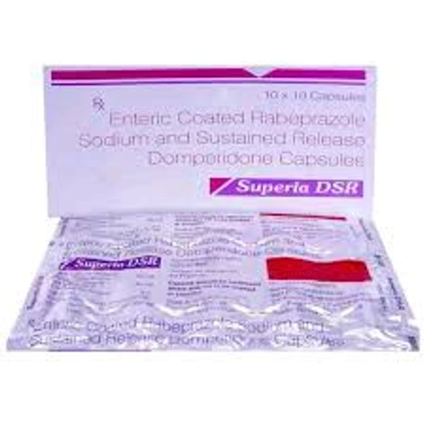 Superia DSR Capsule is a combination medicine used to treat gastroesophageal reflux disease (acid reflux). It works by relieving the symptoms of acidity such as heartburn, stomach pain, or irritation. It also neutralizes the acid and promotes easy passage of gas to reduce stomach discomfort.