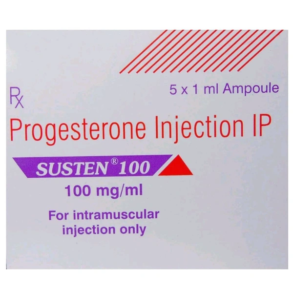 Susten 100 mg Injection 1 ml is used in the treatment of dysfunctional uterine bleeding threatened abortion, and amenorrhoea. It is also used in the maintenance of early pregnancy. This medicine contains progesterone, a female hormone which helps increase the progesterone levels in the body. Common side effects include injection site reactions, rash or any other allergy, changes in the breast, darkening of facial skin, scalp hair loss, coarsening of hair in abnormal regions.