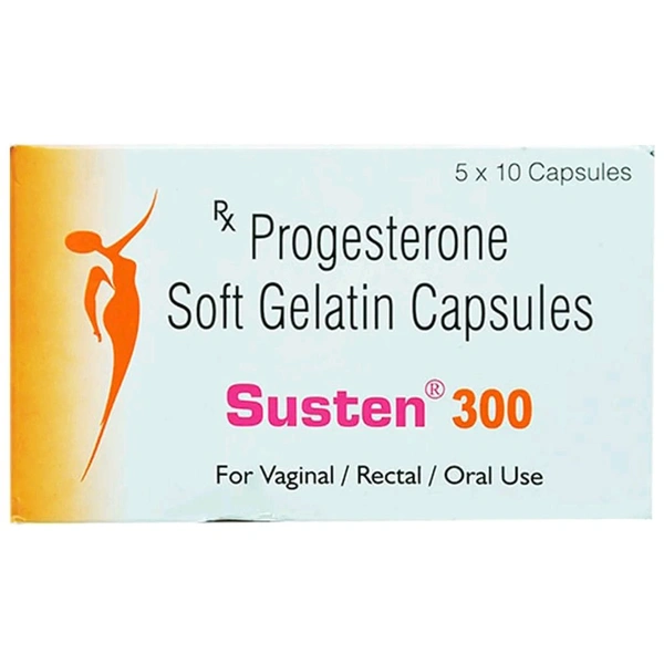 Susten 300 Capsule is a female hormone used in the treatment of female infertility. This medicine helps boost the production of hormones involved in the ovulation process. Common side effects include flushing (reddening of the skin, especially the face), headache, Insomnia, tiredness, dizziness, breast pain or tenderness, heavy periods, etc. It is also used to restore the menstrual cycle in women who have missed their periods. This medicine is only intended for use in women. Hence should not be used in male population, pregnant/breastfeeding women, and children