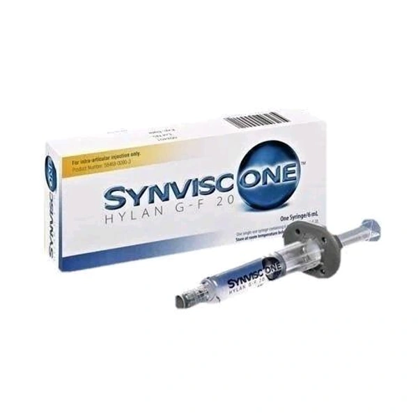 Synvisc-One ( hylan G-F 20) is a prescription, single-injection visco-supplement used to treat knee pain caused by osteoarthritis. It works by mimicking natural synovial fluid, lubricating the joint and providing pain relief for up to six months. It is intended for patients not finding adequate relief from exercise or painkillers.