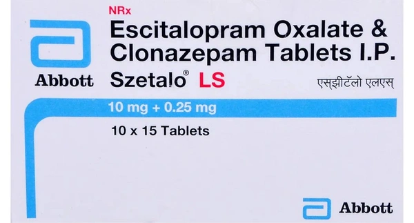Szetalo LS Tablet is used to treat anxiety disorders. It contains Clonazepam and Escitalopram, which produces a calming effect by suppressing the abnormal activity of nerve cells and increases the serotonin hormone levels that improve mood, behaviour, and cognition in patients with anxiety. It may cause common side effects such as nausea, headache, dizziness, confusion, drowsiness, fatigue, sleeping problems, breathlessness, poor coordination of movements, stomach upset, decreased libido (low sexual desire), and memory problems. Before taking this medicine, you should tell your doctor if you are allergic to any of its components or if you are pregnant/breastfeeding, and about all the medications you are taking and pre-existing medical conditions.