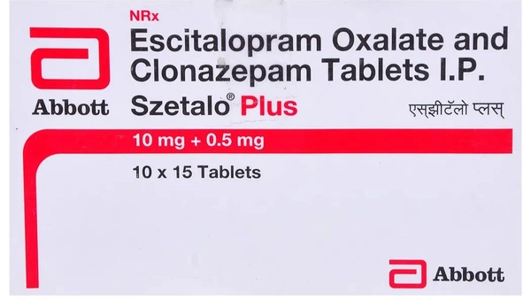 Szetalo Plus Tablet is used to treat anxiety disorders. It contains Clonazepam and Escitalopram, which produces a calming effect by suppressing the abnormal activity of nerve cells and increases the serotonin hormone levels that improve mood, behaviour, and cognition in patients with anxiety. It may cause common side effects such as nausea, headache, dizziness, confusion, drowsiness, fatigue, sleeping problems, breathlessness, poor coordination of movements, stomach upset, decreased libido (low sexual desire), and memory problems. Before taking this medicine, you should tell your doctor if you are allergic to any of its components or if you are pregnant/breastfeeding, and about all the medications you are taking and pre-existing medical conditions.