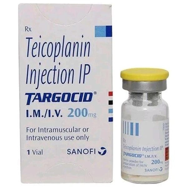 Targocid 200 mg injection is a glycopeptide antibiotic used to treat serious, hospital-acquired gram-positive bacterial infections. It works by inhibiting bacterial cell wall synthesis, targeting infections in the blood, heart, lungs, skin, soft tissues, bones, joints, and urinary tract.
