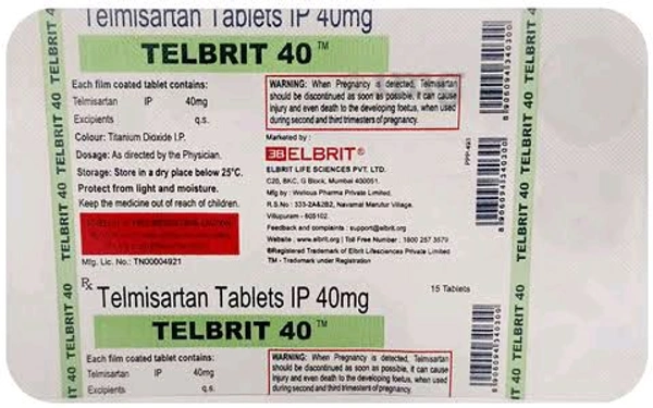 Telbrit 40mg Tablet is a medicine used to treat high blood pressure and heart failure. Lowering blood pressure helps prevent future heart attacks and strokes. This medicine is also effective in preserving kidney function in patients with diabetes.