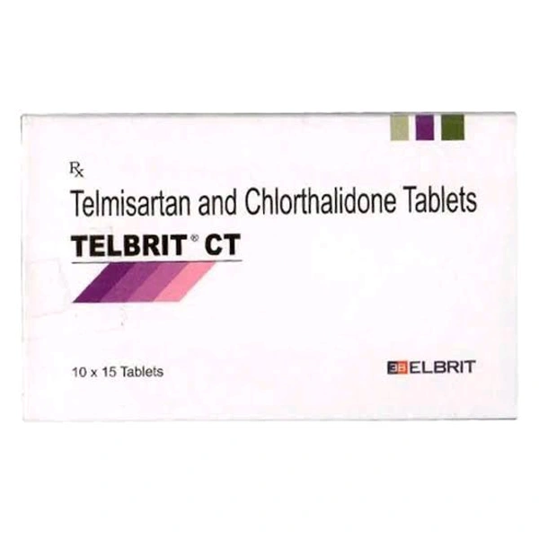 Telbrit CT Tablet is used to treat hypertension (high blood pressure). It contains Telmisartan and Chlorthalidone, which relaxes and widens the blood vessels. Also, it prevents the absorption of excess salt in the body, preventing fluid retention