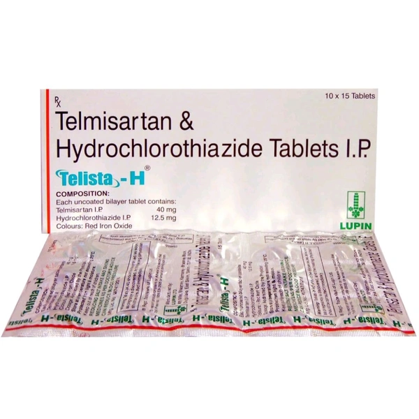 Telista H Tablet is used for the treatment of hypertension (high blood pressure). It contains Telmisartan and Hydrochlorothiazide, which helps to relax and widen the blood vessels (arteries). Also, it prevents absorption of excess salt in the body, preventing fluid retention. Thus, it lowers blood pressure and prevents the risk of stroke, heart attack and oedema (fluid retention). In some cases, you may experience side effects such as dizziness, feeling tired, nausea, diarrhoea, back pain, and cold/flu symptoms. Before taking this medicine, you should tell your doctor if you are allergic to any of its components or if you are pregnant/breastfeeding, and about all the medications you are taking and pre-existing medical conditions.