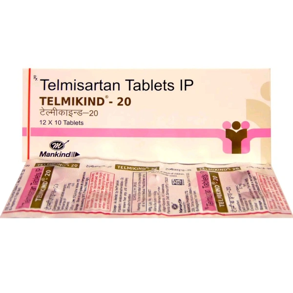 Telmikind-20 Tablet is used to treat hypertension (high blood pressure) in adults and to reduce the risk of heart attack or stroke in adults. It contains Telmisartan, which widens and relaxes blood vessels. Thus, lowers high blood pressure. In some cases, you may experience side effects such as diarrhoea, sinus infection, back pain, or low blood pressure. Before taking this medicine, you should tell your doctor if you are allergic to any of its components or if you are pregnant/breastfeeding, and about all the medications you are taking and pre-existing medical conditions.