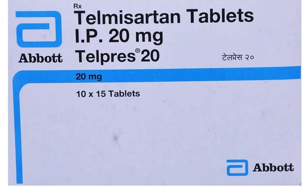 Telpres 20 Tablet is used to treat hypertension (high blood pressure) in adults and to reduce the risk of heart attack or stroke in adults. It contains Telmisartan, which widens and relaxes blood vessels. Thus, lowers high blood pressure. In some cases, you may experience side effects such as diarrhoea, sinus infection, back pain, or low blood pressure. Before taking this medicine, you should tell your doctor if you are allergic to any of its components or if you are pregnant/breastfeeding, and about all the medications you are taking and pre-existing medical conditions.