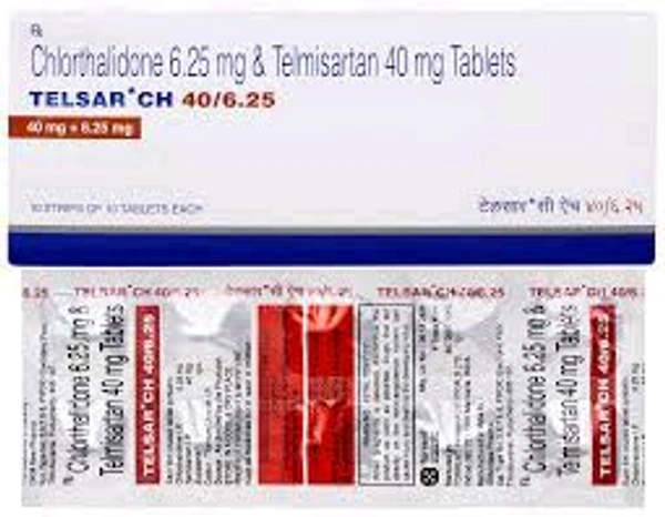 Telsar CH 40mg/6.25mg Tablet is a combination of two medicines that helps keep the blood pressure under control. The medicine works by reducing the risk of strokes and myocardial infarction (heart attack), thereby treating hypertension (high blood pressure).