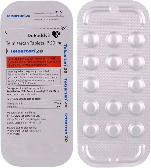Telsartan 20 mg tablet is a prescription medication used to treat high blood pressure (hypertension) and lower the risk of cardiovascular events like heart attacks and strokes. It works by relaxing blood vessels, facilitating easier blood flow for the heart, and can also treat heart failure and manage kidney issues.
