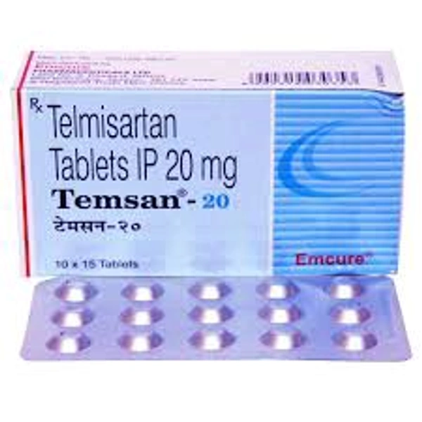 Temsan 20 Tablet is a medicine used to treat high blood pressure and heart failure. Lowering blood pressure helps to prevent future heart attacks and strokes. This medicine is also effective in preserving kidney function in patients with diabetes.
