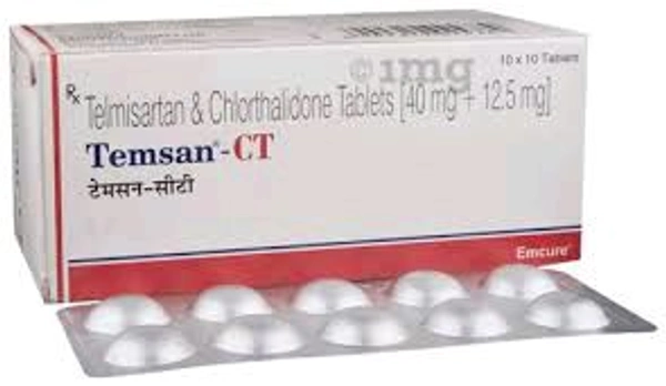 Temsan-CT 40 Tablet is a combination of two medicines that helps keep the blood pressure under control. The medicine works by reducing the risk of strokes and myocardial infarction (heart attack), thereby treating hypertension (high blood pressure).