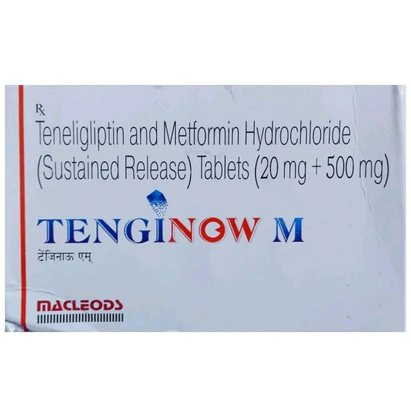 Tenginow M Tablet is used to treat type 2 diabetes mellitus. It works by decreasing liver glucose production, lowering intestinal glucose uptake and increasing insulin levels in the body. In some cases, this medicine may cause side effects such as nausea, vomiting, diarrhoea, headache, and stomach ache. Before taking this medicine, inform the doctor if you are pregnant or breastfeeding, taking any other medication, or have any pre-existing medical conditions.
