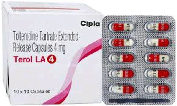 Terol LA-4 Capsule is used for the treatment of overactive bladder syndrome (it is a condition in which the bladder contracts muscles uncontrollably and urgent need to urinate, causing frequent urination and inability to control urination