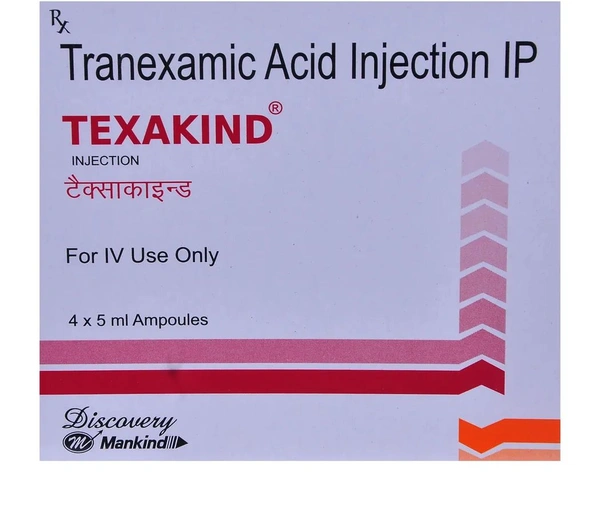 Texakind 500mg Injection is used to treat bleeding. It helps to prevent or reduce bleeding in conditions like tooth removal, heavy periods, dysfunctional uterine bleeding, nosebleed, and in any oral, prostate, or bladder surgery.