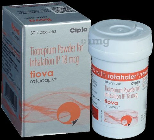 Tiova Rotacap is an anticholinergic medicine. It is used in the treatment of chronic obstructive pulmonary disease and asthma. It relaxes the airway muscles and makes it easier to breathe. This helps relieve symptoms such as chest tightness, shortness of breath, wheezing, and coughing.