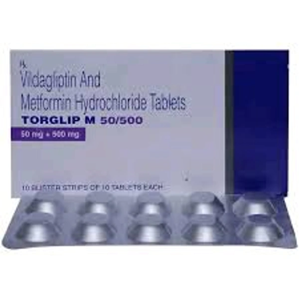 Torglip M 50/500 Tablet is a combination of two medicines that control high blood sugar levels in people with type 2 diabetes mellitus. This helps prevent serious complications of diabetes, such as kidney damage and blindness, and may also reduce your chances of having a heart attack or stroke.