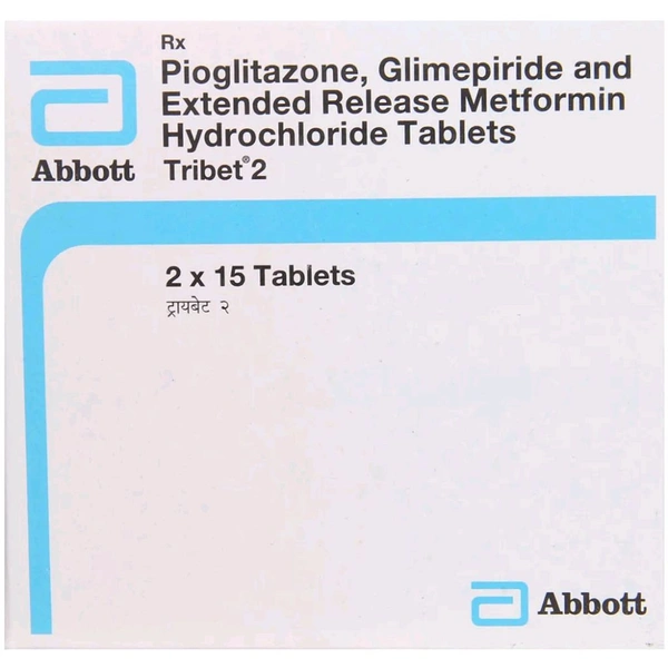 Tribet 2 Tablet is used to treat type 2 diabetes. It works by reducing sugar production in the liver, delaying sugar absorption from the intestines, and removing sugar from the blood. In some cases, this medicine may cause side effects such as stomach pain, nausea, diarrhoea, vomiting, headache, metallic taste, or low blood sugar. Before taking this medicine, inform the doctor if you are pregnant or breastfeeding, taking any other medication, or have any pre-existing medical conditions.