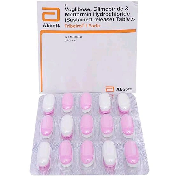 Tribetrol 1 Forte Tablet is used to treat type 2 diabetes mellitus. It acts by increasing the amount of insulin released by the pancreas. Thus, prevent the blood glucose levels from rising to very high levels and keeps your diabetes under control. It may cause certain common side effects such as hypoglycaemia (low blood glucose levels), taste change, nausea, diarrhoea, stomach pain, headache, and upper respiratory symptoms. Before taking this medicine, you should tell your doctor if you are allergic to any of its components or if you are pregnant/breastfeeding, and about all the medications you are taking and pre-existing medical conditions.