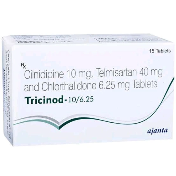 Tricinod 10/6.25 Tablet is a combination of medicines used to treat hypertension (high blood pressure) when a single medication is not effective. It helps to lower high blood pressure thus reduces chances of future heart attack and stroke.