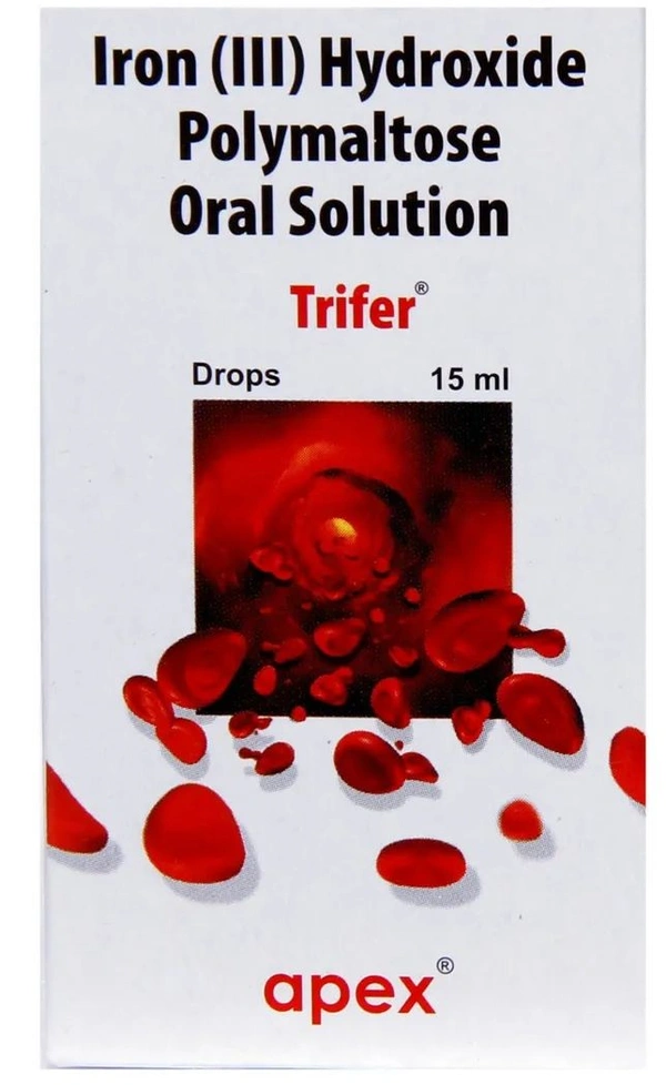 Trifer Drops is used to treat anaemia (lack of blood) due to iron deficiency and chronic kidney disease. It works by enhancing the absorption of iron and replenishing iron stores. In some cases, this medicine may cause side effects such as vomiting, nausea, diarrhoea or dark-coloured stool. Before taking this medicine, inform the doctor if you are pregnant or breastfeeding, taking any other medication, or have any pre-existing medical conditions