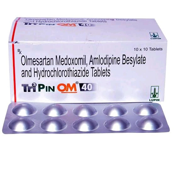 Tripin OM 40 Tablet is a combination of medicines used to treat hypertension (high blood pressure) when a single medication is not effective. It helps to lower high blood pressure thus reduces chances of future heart attack and stroke.