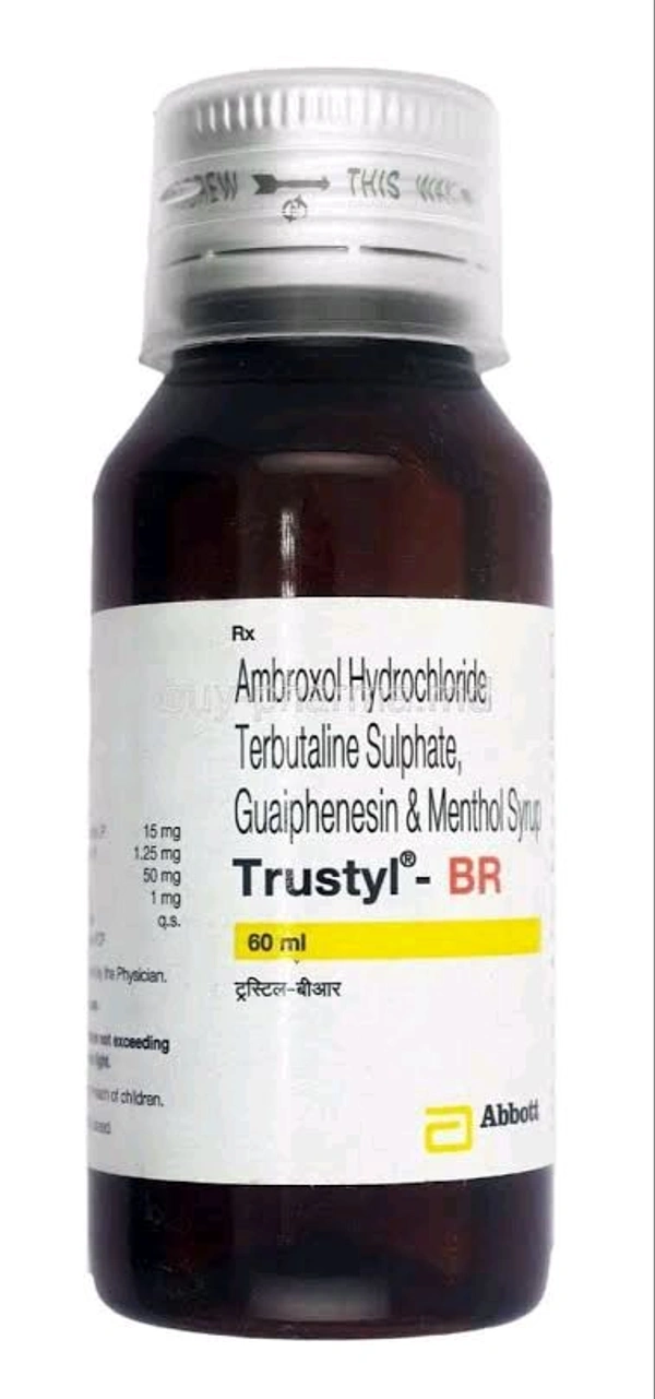 Trustyl BR Syrup is a combination medicine used to treat cough. It thins the mucus in the nose and windpipe, making it easier to cough out. This medicine also relieves throat irritation and provides cooling sensation.