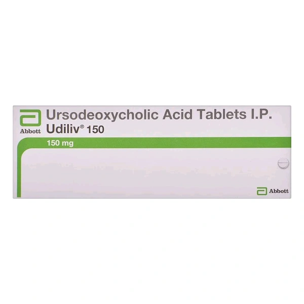 Udiliv 150 Tablet is used to treat gallstones, primary biliary cholangitis (an autoimmune disease of the liver), excess cholesterol in bile and children above 6 years with biliary and liver diseases caused by cystic fibrosis. It contains Ursodeoxycholic acid, which helps decrease the production of cholesterol in the blood, thereby dissolving gall bladder stones composed mainly of cholesterol. It has a protective effect on the liver cells. Thus, it protects from injury caused by toxic bile acids and improves liver function. In some cases, you may experience certain common side effects such as abdominal discomfort, abdominal pain, diarrhoea, nausea, rash, dizziness, indigestion and weakness. Before taking this medicine, you should tell your doctor if you are allergic to any of its components or if you are pregnant/breastfeeding, and about all the medications you are taking and pre-existing medical conditions.