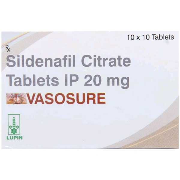 Vasosure Tablet is used to treat erectile dysfunction (impotence) in adult men. Additionally, it may also be used to treat pulmonary arterial hypertension (high blood pressure in the lungs) in adults to improve the ability to exercise and to slow down clinical worsening. It contains Sildenafil, which works by relaxing the blood vessels in the penis, thereby allowing the blood to flow into the penis when the person is sexually excited. Thus, it helps treat erectile dysfunction. It relaxes blood vessels, increases the blood supply to the lungs and reduces the workload of the heart. Thereby, helps to treat pulmonary hypertension. In some cases, it may cause side effects such as headache, nausea, dizziness, indigestion and stomach upset. Before taking this medicine, you should tell your doctor if you are allergic to any of its components or if you are pregnant/breastfeeding, and about all the medications you are taking and pre-existing medical conditions.