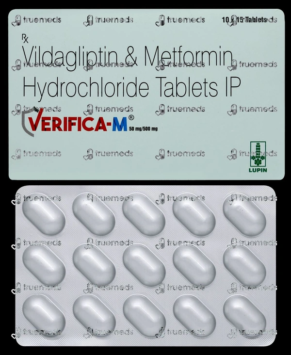 Verifica-M 500mg/50mg Tablet is a combination of two medicines that control high blood sugar levels in people with type 2 diabetes mellitus. This helps prevent serious complications of diabetes such as kidney damage and blindness and may also reduce your chances of having a heart attack or stroke.
