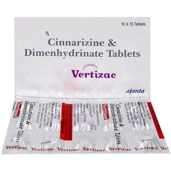 Vertizac Tablet is used to treat the symptoms of vertigo, such as dizziness, spinning sensation, nausea, and vomiting. It can help you to carry out daily activities that are difficult when you have vertigo. It contains two medicines, namely Cinnarizine and Dimenhydrinate, which improve the blood flow in the ear and prevent problems with loss of balance.