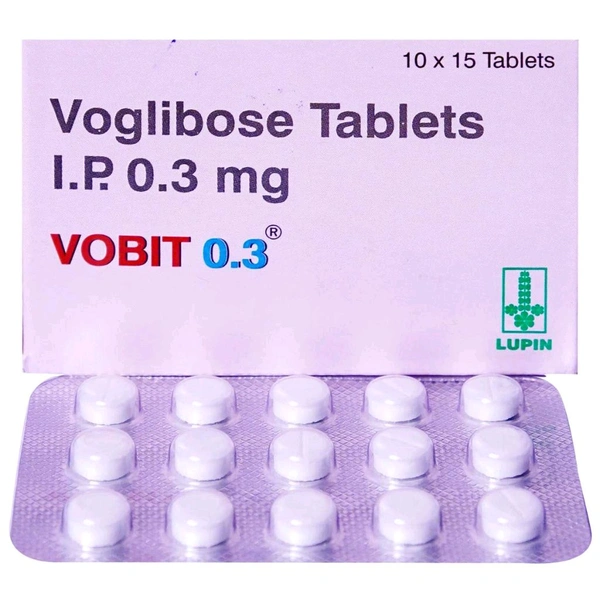 Vobit 0.3 Tablet is a medicine used to treat type 2 diabetes mellitus. It helps control the high blood sugar levels in your body after each meal. It is used when other similar medicines along with a restricted diet, are unable to control abnormally high blood sugar levels.
