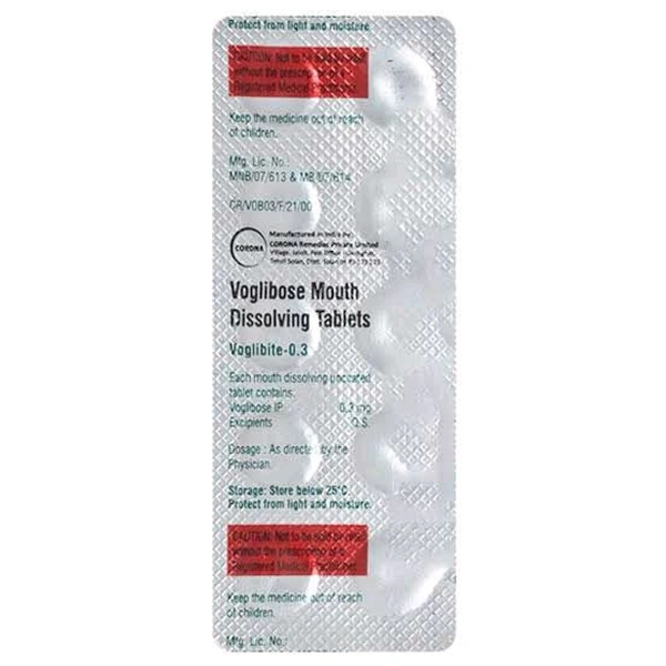 Voglibite 0.3 Tablet MD is a medicine used to treat type 2 diabetes mellitus. It helps control the high blood sugar levels in your body after each meal. It is used when other similar medicines along with a restricted diet, are unable to control abnormally high blood sugar levels.