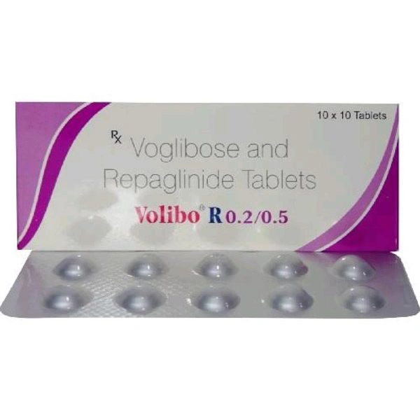 Volibo R 0.5mg/0.2mg Tablet is a combination of two medicines used to treat type 2 diabetes mellitus. It helps control the high blood sugar levels in your body after each meal. It is used when other similar medicines along with a restricted diet, are unable to control abnormally high blood sugar levels
