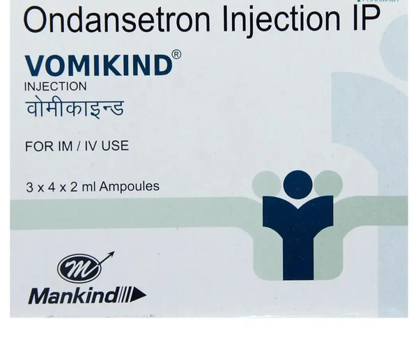 VOMIKIND INJECTION is an antiemetic medication used in the treatmnet and prevention of nausea and vomiting during chemotherapy. This medication contains ondansetron which functions by inhibiting the activity of serotonin, a neurotransmitter that activates the brain's vomiting center (chemoreceptor trigger zone, or CTZ).