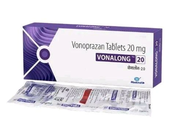 Vonalong 20 Tablet 10's is used to treat reflux esophagitis, gastric ulcers, and duodenal ulcers. It also helps prevent the recurrence of gastric or duodenal ulcers during the use of low-dose aspirin or NSAIDs. It works by reducing the amount of acid produced in the stomach. Common side effects may include diarrhoea, bloating, stomach pain, nausea, and indigestion. Before starting Vonalong 20 Tablet 10's, let the doctor know if you are pregnant, breastfeeding, taking other medicines or have pre-existing medical conditions.