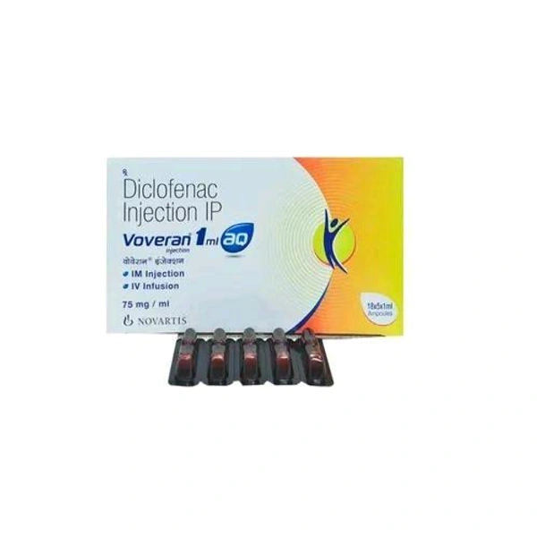 Voveran AQ Injection is a pain-relieving medicine. It is used to treat various types of pain, swelling, stiffness, and joint pain in conditions like rheumatoid arthritis, osteoarthritis, and acute musculoskeletal injuries. It is given in cases where oral administration is not possible.